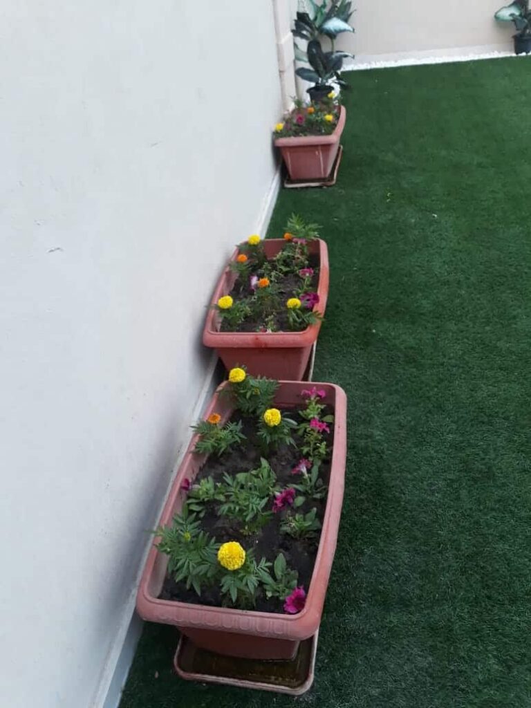 تعتمد مؤسسة فنون الزهور على اختيار أنواع عشب مناسبة تتحمل درجات الحرارة وتتميز بكثافة اللون الأخضر وقوة التحمل. كما نهتم بتجهيز الأرضية بشكل صحيح من خلال تسوية التربة وإضافة الأسمدة المناسبة، مع تركيب أنظمة ري فعالة تضمن نموًا صحيًا ومتوازنًا.
